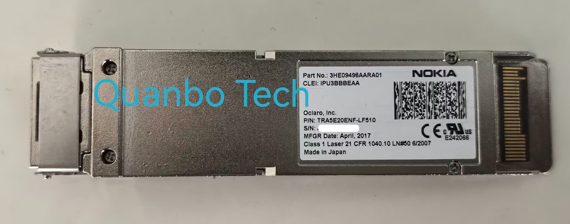 In addition to Nokia 3HE09498AA , Quanbo Tech supply a wide range of other Nokia fiber optic transceiver . If you have any need or interest, please feel free to send inquiry to Sale@quanbotelecom.com